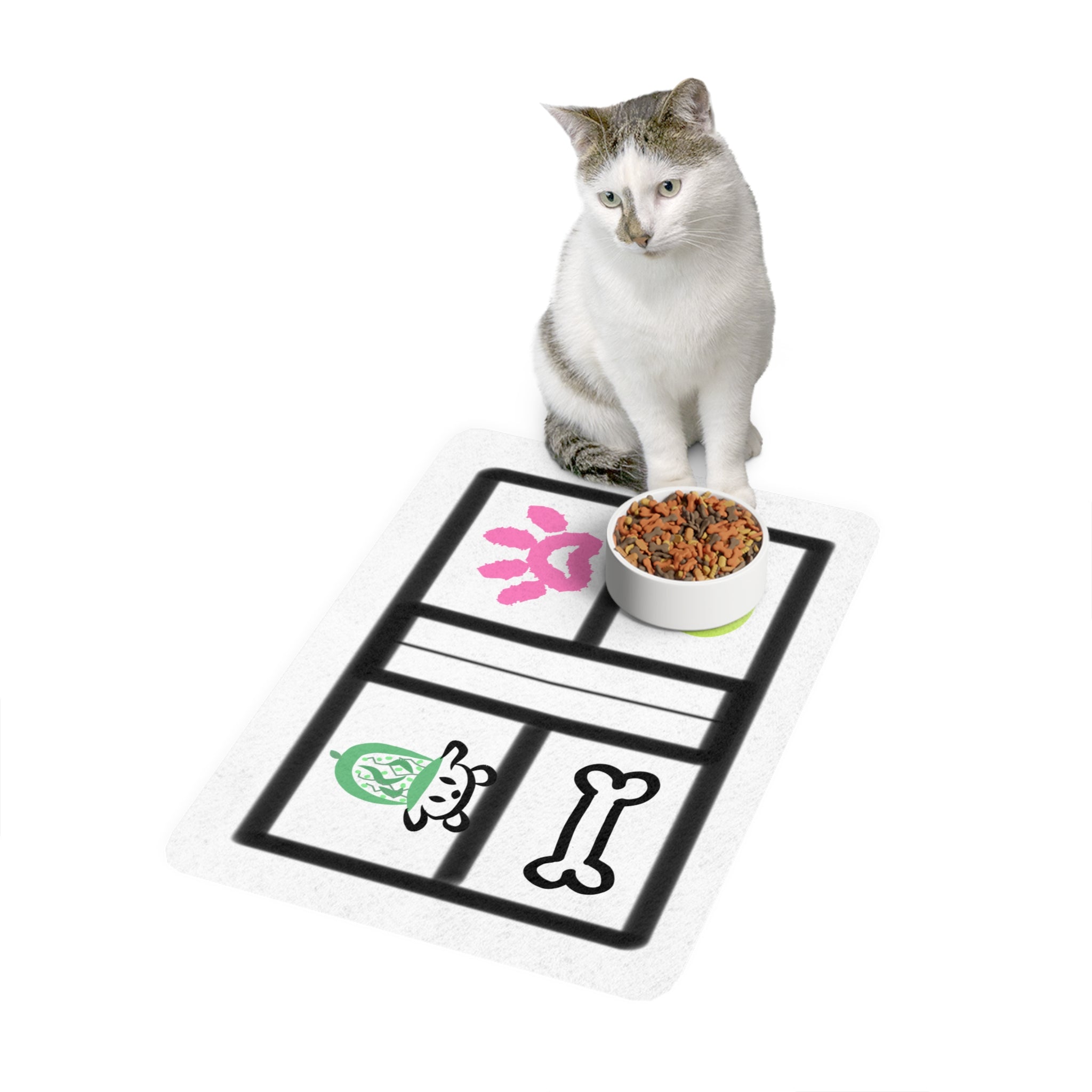 This Pet Mat features a unique design showcasing Pickleball, making it the perfect pet accessory for any enthusiast. Made of 100% polyester front and neoprene rubber backing, this stylish and one of a kind mat is durable, vibrant, and anti-slip. It is a great gift for pet owners who love Pickleball and want to keep their pet's feeding area stylish and clean. Perfect for pet lovers celebrating their furry friend's birthdays or adoption anniversaries.